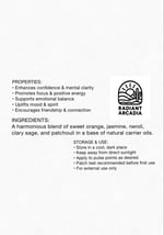 A bright and charming oil based scent, with essential oils of jasmine, sweet orange, clary sage, orange blossom, and patchouli, this blend is made for confidence, focus, and connection, like friendship and teamwork.